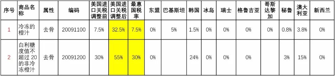 橙汁关税自1999年起就一直在变动,最终中国将冷冻橙汁再次归入到2009.1100,保持了加入世贸组织时进口关税由75%调至的7.5%。美国此次也将该产品列入加征关税中,但东盟、冰岛、瑞士、格鲁吉亚、哥斯达黎加、新西兰都是零关税,这几个国家的冷冻橙汁一向广受好评,尤其是哥斯达黎加的橙汁,因价格上的优势备受饮品店欢迎。