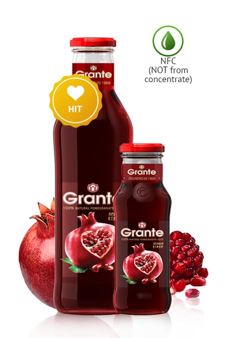 Grante是生产天然果汁,并保留最大的维生素和有益元素,Grante品牌是自然的代名词,100%天然石榴汁含有更多的抗氧化剂,石榴汁单宁可以预防胃溃疡,果胶可以将所有的废物和毒素结合在一起,将他们排出体外,从而得到排毒和净化。