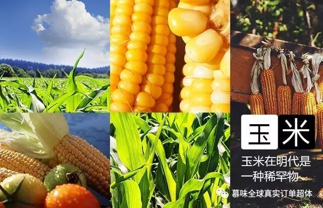 “一碟玉米玫瑰果馅蒸饼”、“两大盘玉米面鹅油蒸饼”,这是明代小说《金瓶梅》里关于玉米的介绍,说明物以稀为贵,玉米在当时还是一种稀罕物,是小孩的零食,待客的珍贵东西,价格不菲。只是到后来经过培育推广玉米才在中国普遍栽种,竟占有了中国粮食作物的1/6,其潜在价值令人叹为观止。