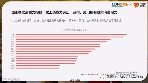 俗话说,民以食为天。那么放眼全国,哪里的吃货最厉害?2017年6月27日,第一财经商业数据中心(CBNData)联合口碑发布《2017国民餐饮消费大数据报告》(以下简称为CBNData《报告》)。《报告》基于口碑大数据,通过对城市餐饮地图、典型餐饮场景、餐饮消费趋势等国民餐饮消费进行了深度洞察,数据显示,国民餐饮消费呈快时尚化、特色化、健康化、极致化、潮流化五大趋势,厦门、广州、天津吃得“最洋气”;北京、上海、厦门最容易接受新颖菜系;青岛、郑州、北京是三大“杂食城市”;北京、厦门、杭州位列“吃得最健康”城市三甲;南京是“小吃之王”,天津荣登“撸串之都”。