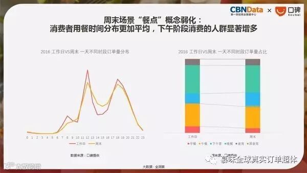 而到了周末,这种一日三餐划分较为明确的饮食规律性明显减弱,因为更多的上班族选择在周末开启懒觉模式,午后开始出门逛街吃饭,自然而然,增加了下午茶的消费需求,CBNData《报告》显示,周末下午消费用户显著增多。