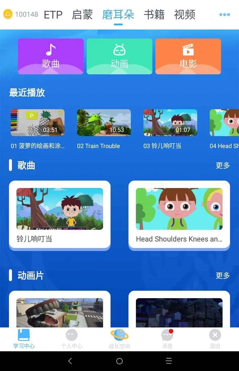iEnglish的磨耳朵模块,有丰富的英文原版儿歌和英文原版动画视频资源,孩子可以根据年龄、兴趣选取不同的内容进行听读输入训练,从而帮助孩子建立良好的语感。