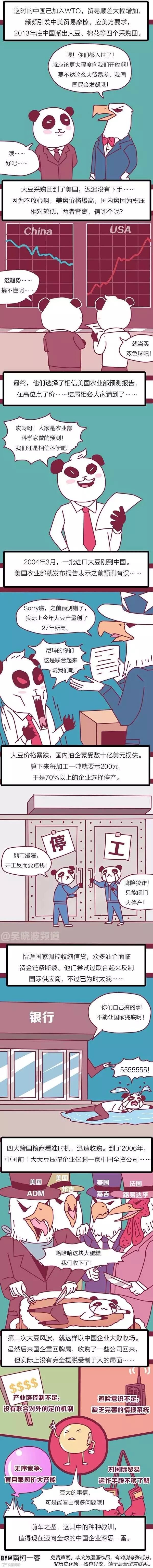 农业部部长韩长赋曾说:“坚决防止玉米成为第二个大豆。”其实又何止是大豆呢?中国产品要走向世界,也让全球产品走进来,在这个过程中,我们还有很多要学。