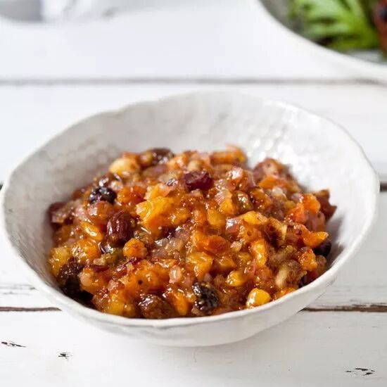 咸菜是用食盐等调味料腌渍后的各种蔬菜,但是用杏干和樱桃替代蔬菜,加入杏酱和粒状芥末,既保留了中国咸菜的香醇爽口,同时还增加了水果的风味,这是蔬菜不能给予的。