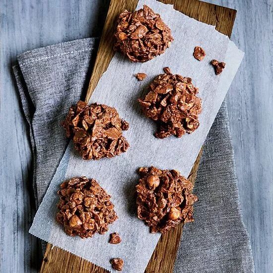 这些香脆的薄片,是由松脆的玉米片组成的,而它包裹的烤榛子和开心果再加上耐嚼的葡萄干,再淋上巧克力,看起来像土堆一样的甜点就出来啦。尝尝它的味道,妙不可言!