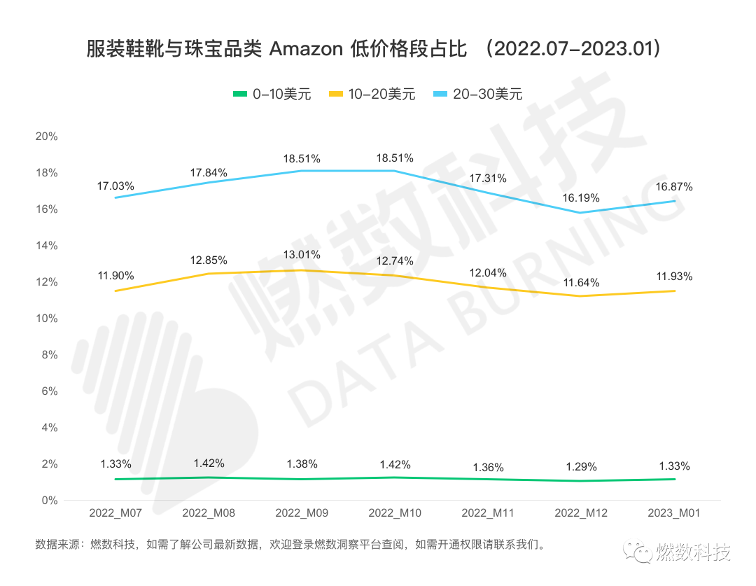 Temu对于Amazon纺服低价产品或有小幅冲击,但不明显:2022年7-9月,Amazon平台纺服珠宝30美元以下产品的占比分别为30%、32%与33%;Temu平台推出后的22年11月-23年1月,Amazon30美元以下产品的占比分别为31%、29%、30%,相较22年8-9月略有下降,但与7月持平,我们认为Temu对于Amazon纺服珠宝品类低价产品可能存在小幅冲击,但仍不明显。