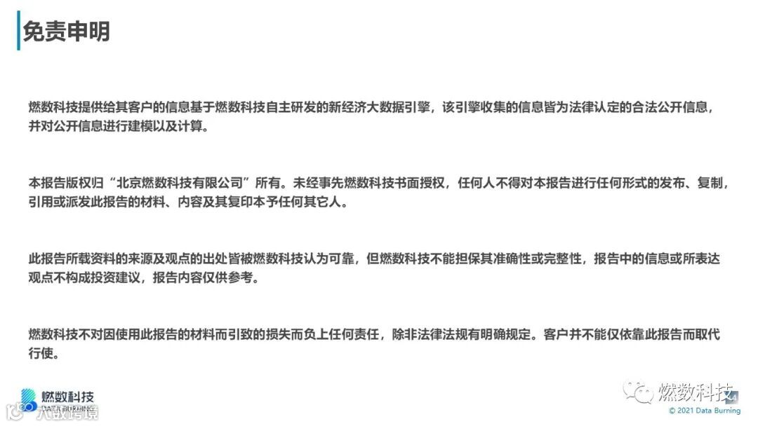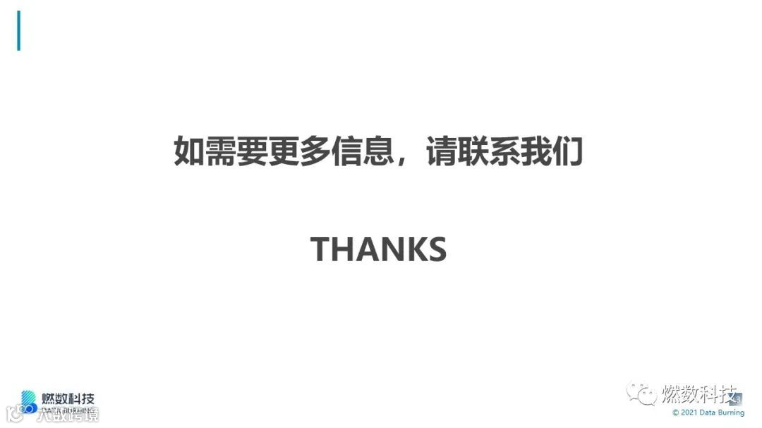 燃数科技是一家为金融机构、消费企业、政府提供数据驱动投资/商业决策的解决方案提供商,高速发展中的我们在2019年已获得知名机构投资。目前覆盖众多行业及A股、港股、美股上市公司,我们不仅为金融机构提供智能投研解决方案,还为消费企业提供数字化运营解决方案。欢迎大家联系我们。