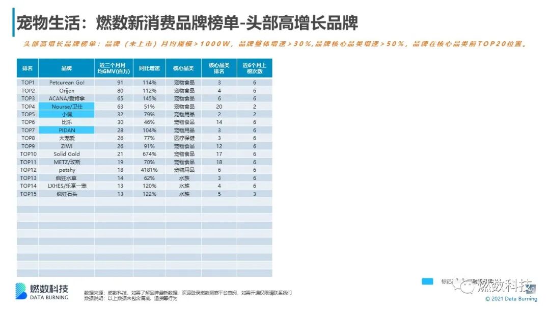 (头部高增长榜单:小佩、卫士、PIDAN 等)