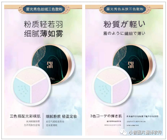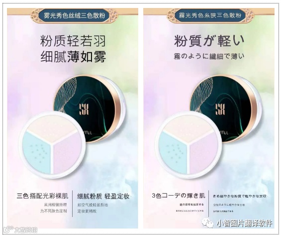二则我们理解的图片翻译软件,就是通过软件识别图片上的文字,然后进行翻译,最终还需要美工将翻译好的文字PS到图片上,如下所示: