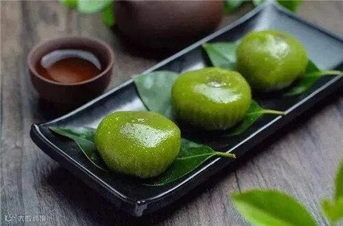清明时节,江南一带有吃青团子的风俗习惯。青团子是用一种名叫“浆麦草”的野生植物捣烂后挤压出汁,接着取用这种汁同晾干后的水磨纯糯米粉拌匀揉和,然后开始制作团子。团子的馅心是用细腻的糖豆沙制成,在包馅时,另放入一小块糖猪油。团坯制好后,将它们入笼蒸熟,出笼时用毛刷将熟菜油均匀地刷在团子的表面,这便大功告成了。