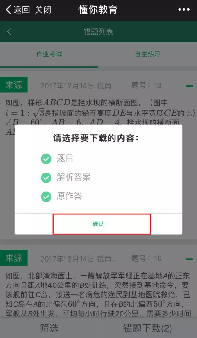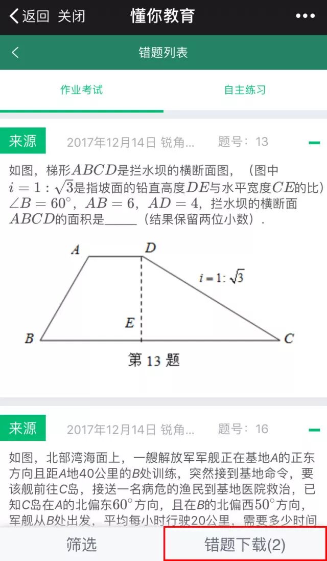 2.点击“+”,下载错题方便线下学习(可多选)。