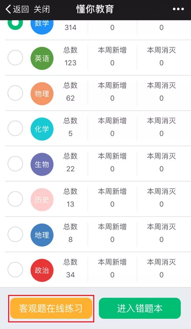 1.进入个人中心后点击错题本;选择科目,可进入客观题在线练习。