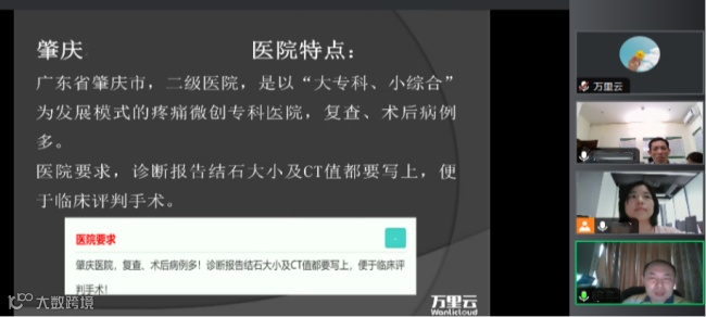 本季度,万里云远程中心在肇庆市一家疼痛微创治疗二级专科医院开展在线交流会活动。此次活动由万里云远程诊断质控中心的陈主任精心挑选来自本院案例完成在线讲解,以深入浅出的方式剖析了多个复杂专科病例,丰富了参会医生在影像诊断领域的专业知识,强化了其临床实践技能。此次会议不仅促进了医生间的学术交流与情感纽带构建,更凸显了万里云远程诊断质控中心在推动医疗行业知识迭代与技术创新中的核心作用,进一步夯实了医院对万里云服务的信任基础。