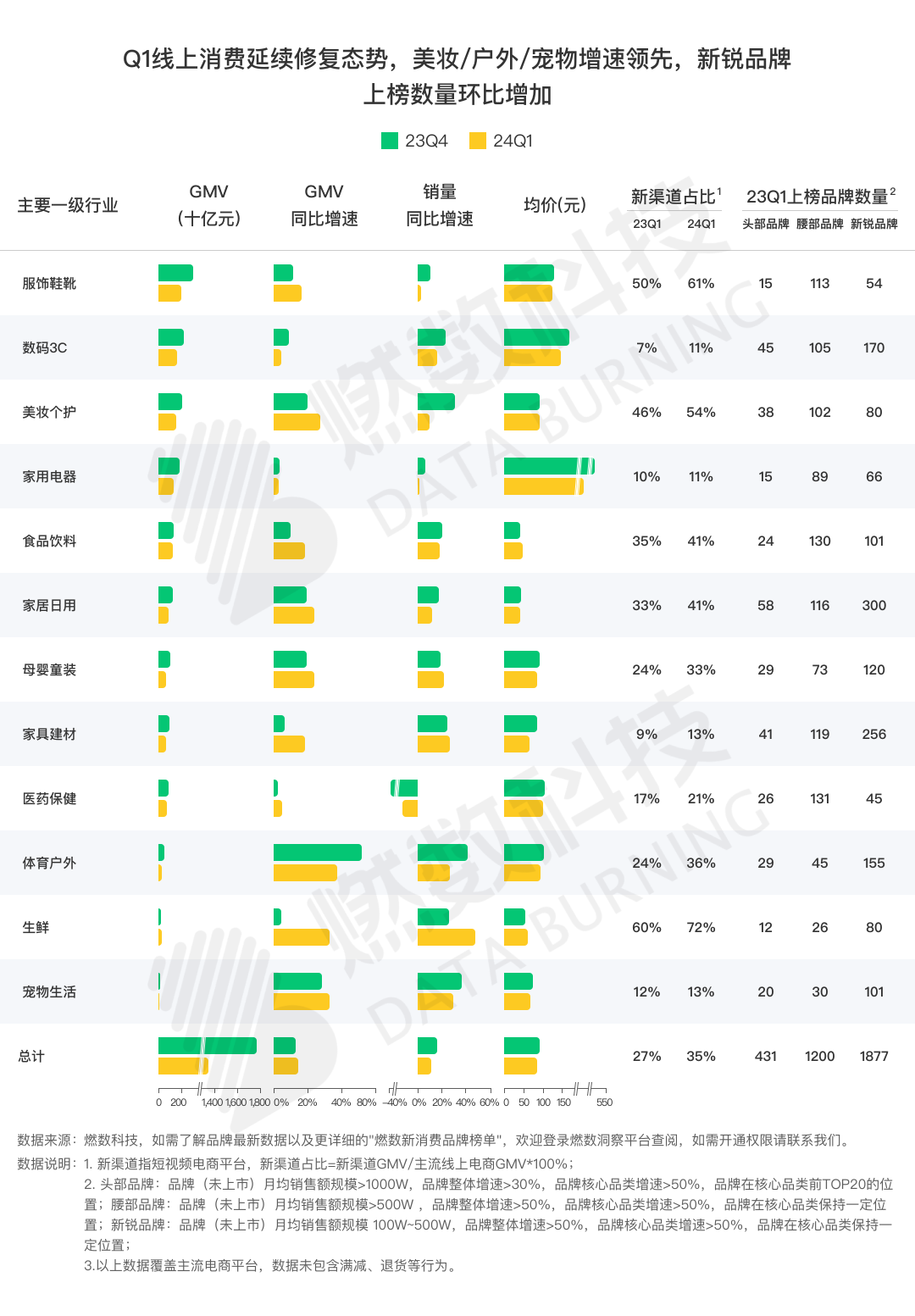 Q1线上消费延续修复态势,美妆/户外/宠物增速领先,新锐品牌上榜数量环比增加