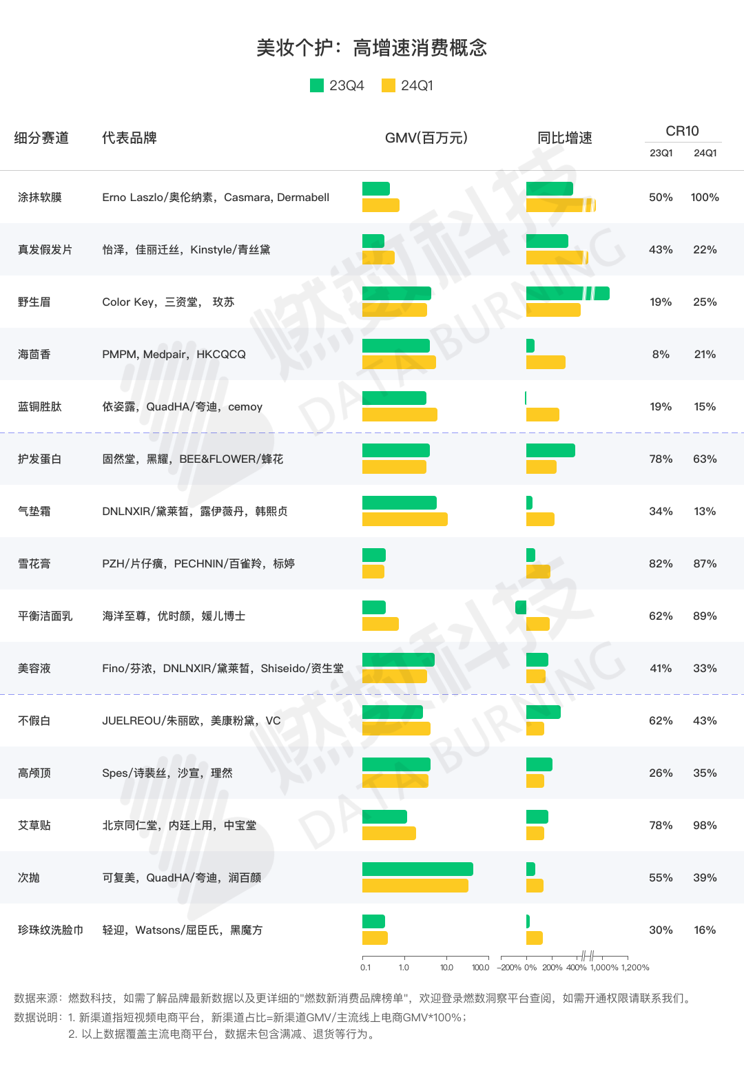 涂抹面膜/真发假发片持续高增长势头;蓝铜胜肽/平衡洁面乳Q1重拾热度,增速拐点明显