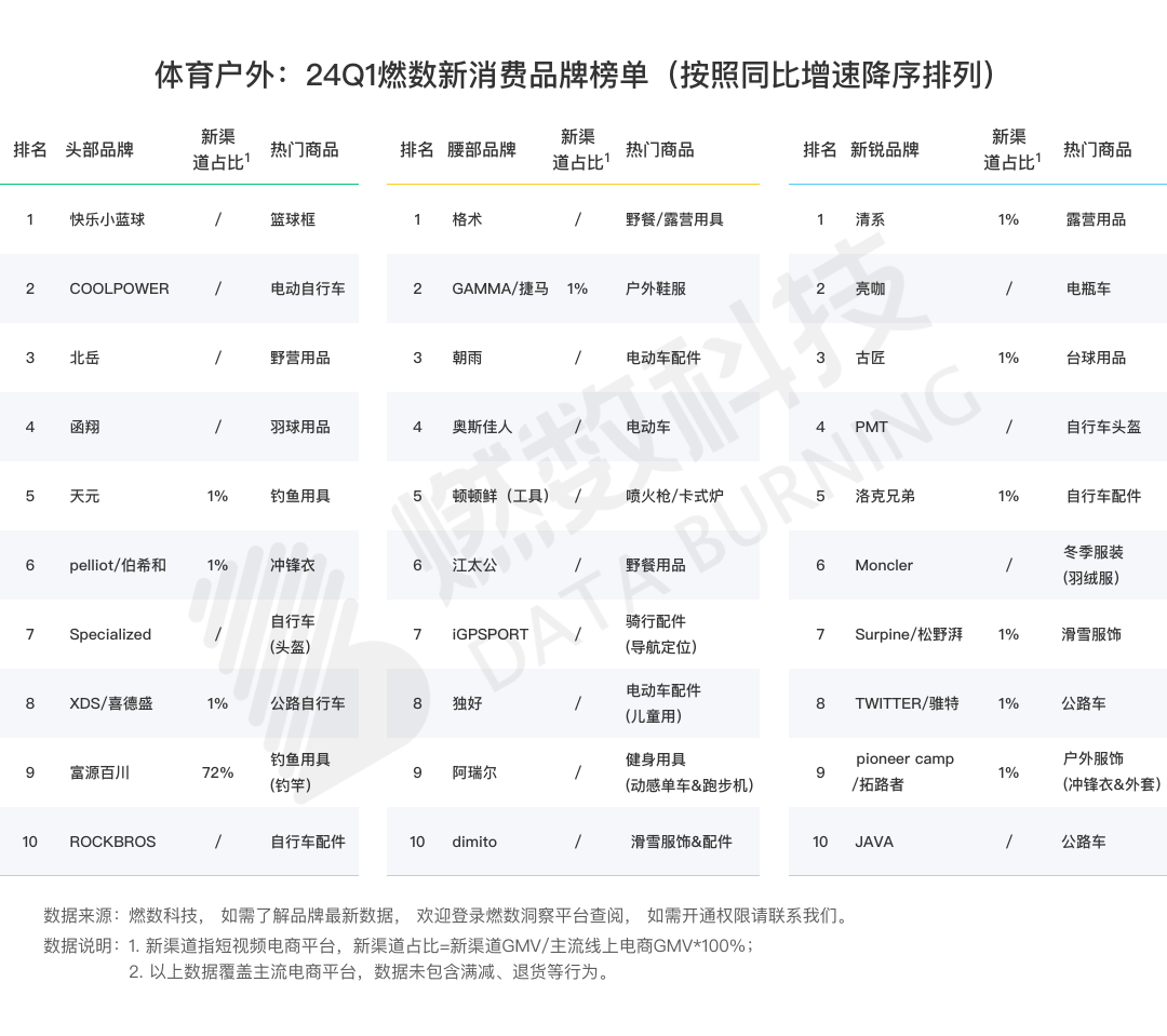 分行业看,Q1美妆个护受益于大促频繁增速领先,家居日用/母婴童装新渠道销售贡献增长;新兴行业中,体育户外/宠物生活热度延续,细分赛道体育用品、精细化宠物食品Q1需求提振。从上榜品牌数量来看,Q1上榜新锐品牌数量环比显著增加,尤其在家居家具赛道。