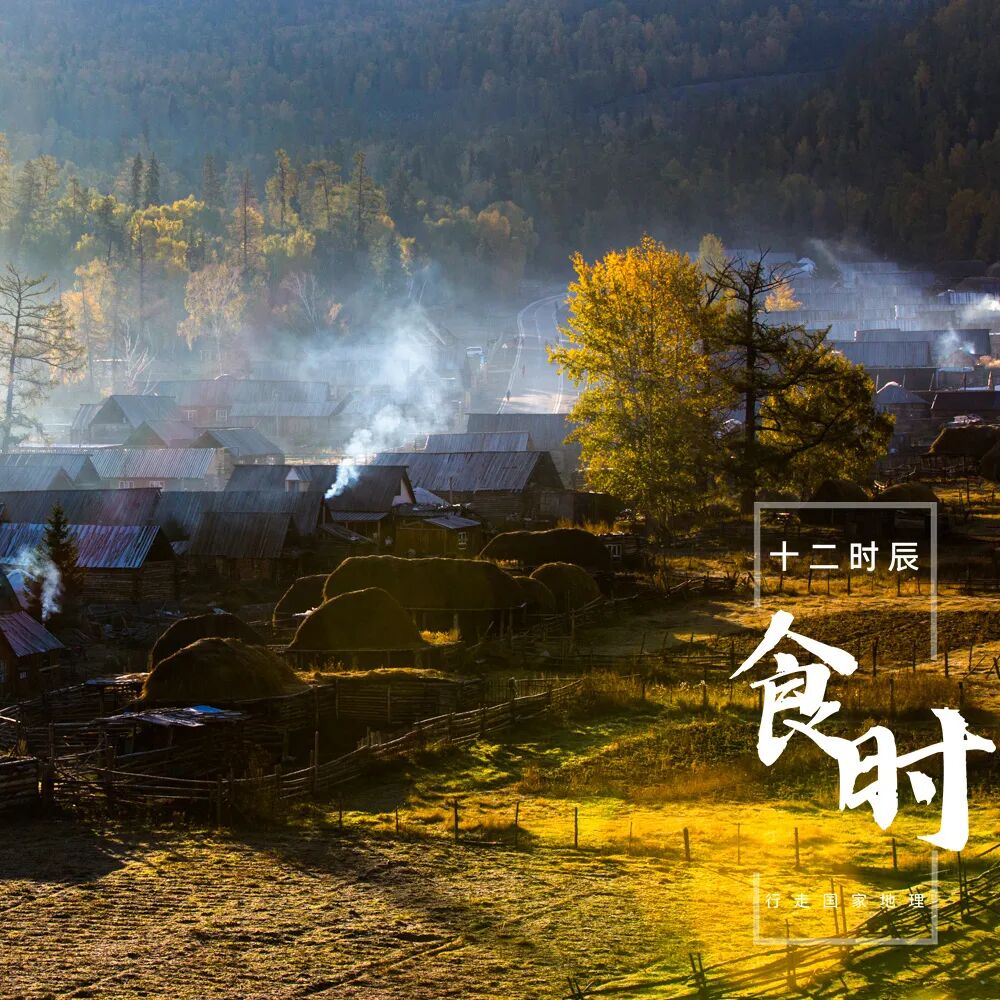食时为 「行走,国家地理十二时辰」 系列藏品十二款藏品中的第五款,作品取景地为新疆喀纳斯禾木村。