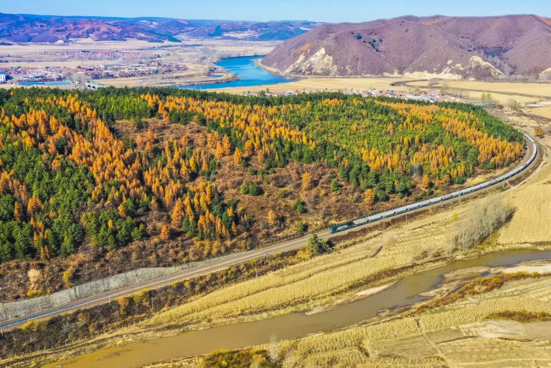 作品描述:一列货运物列车正安全平稳行驶在图佳铁路上。