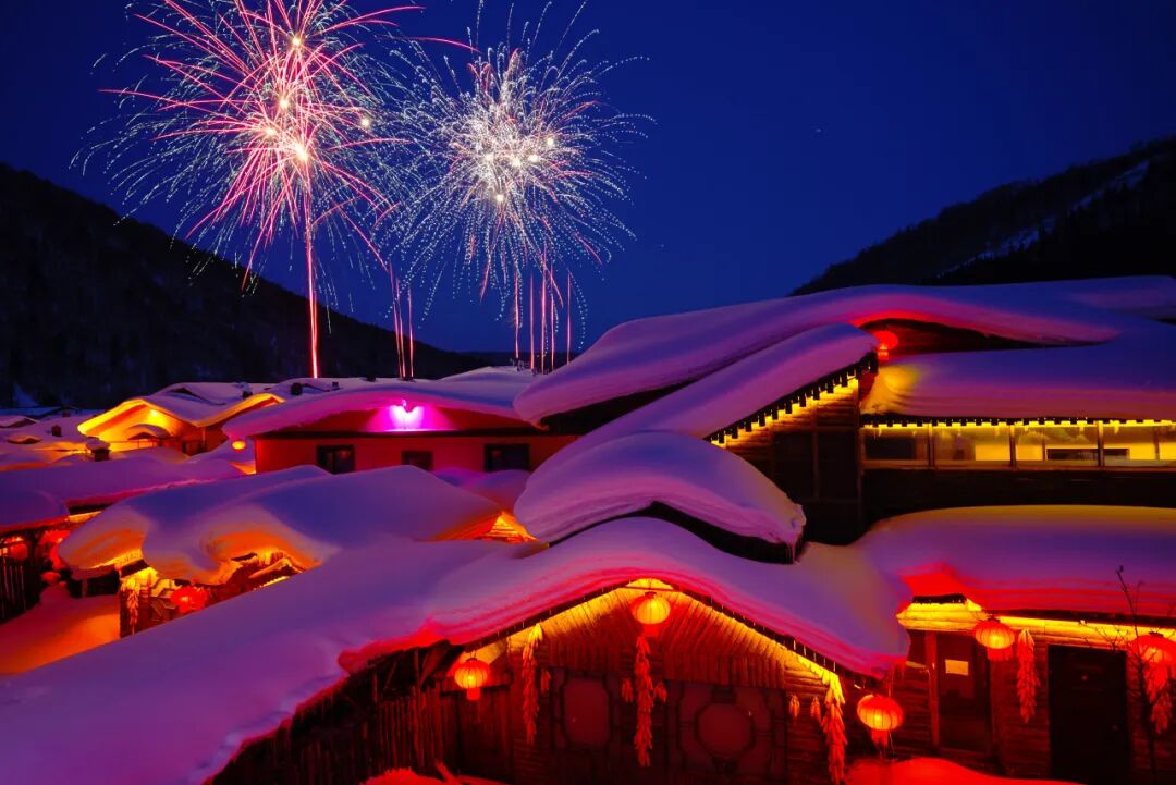 作品名称:《雪乡烟花美景》