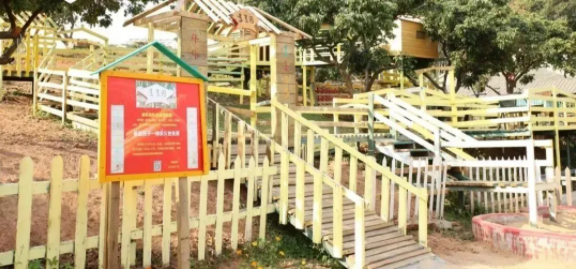 “每到一个地方,老得都会通过自己的手工活,为孩子打造一个童话般的世界:这里的农庄有漫山遍野的花草,有不时传来的鸟鸣、鹅叫,也有木制的小火车、小船,还有滑滑梯等。”