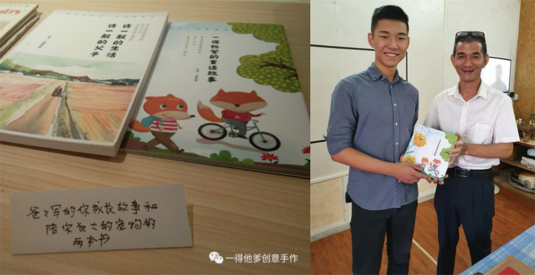“我们爷俩相互搀扶着一起成长,他的勤劳,刻苦,向上,总是让我敬佩。他的阳光,帅气,他的笑容,更是让我醉倒。”