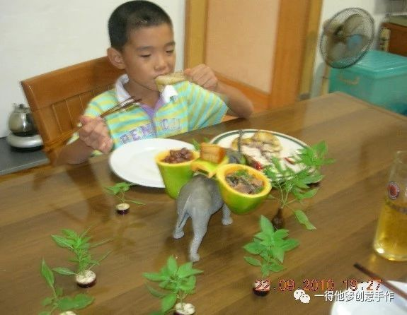 菜式永不重复,每道菜都来自一得当天的生活成长故事,都为儿子打开一个开阔深远的知识面。