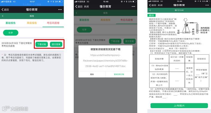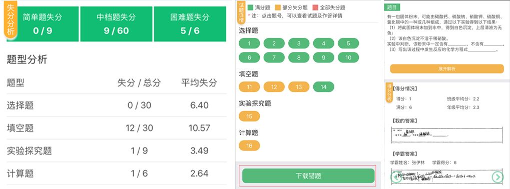 (4)错题回顾与练习:为了方便学生考后对考试内容的再次回顾与学习,可以对错题进行线下的复习与巩固,可一键下载单次考试的错题,方便省时。点击题号可以查看试题的详细解析与答案,还可以看到学霸答案哦,方便你及时进行考后巩固。