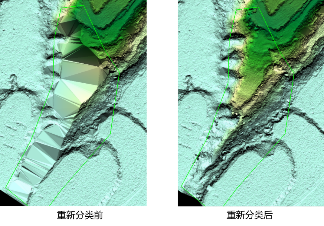 针对陡坎、山顶、林下等区域,软件支持小范围选择后按场景参数进行针对性的局部分类,在避免传统生产流程中反复调试参数工作的同时,减少了人工手动编辑的工作。