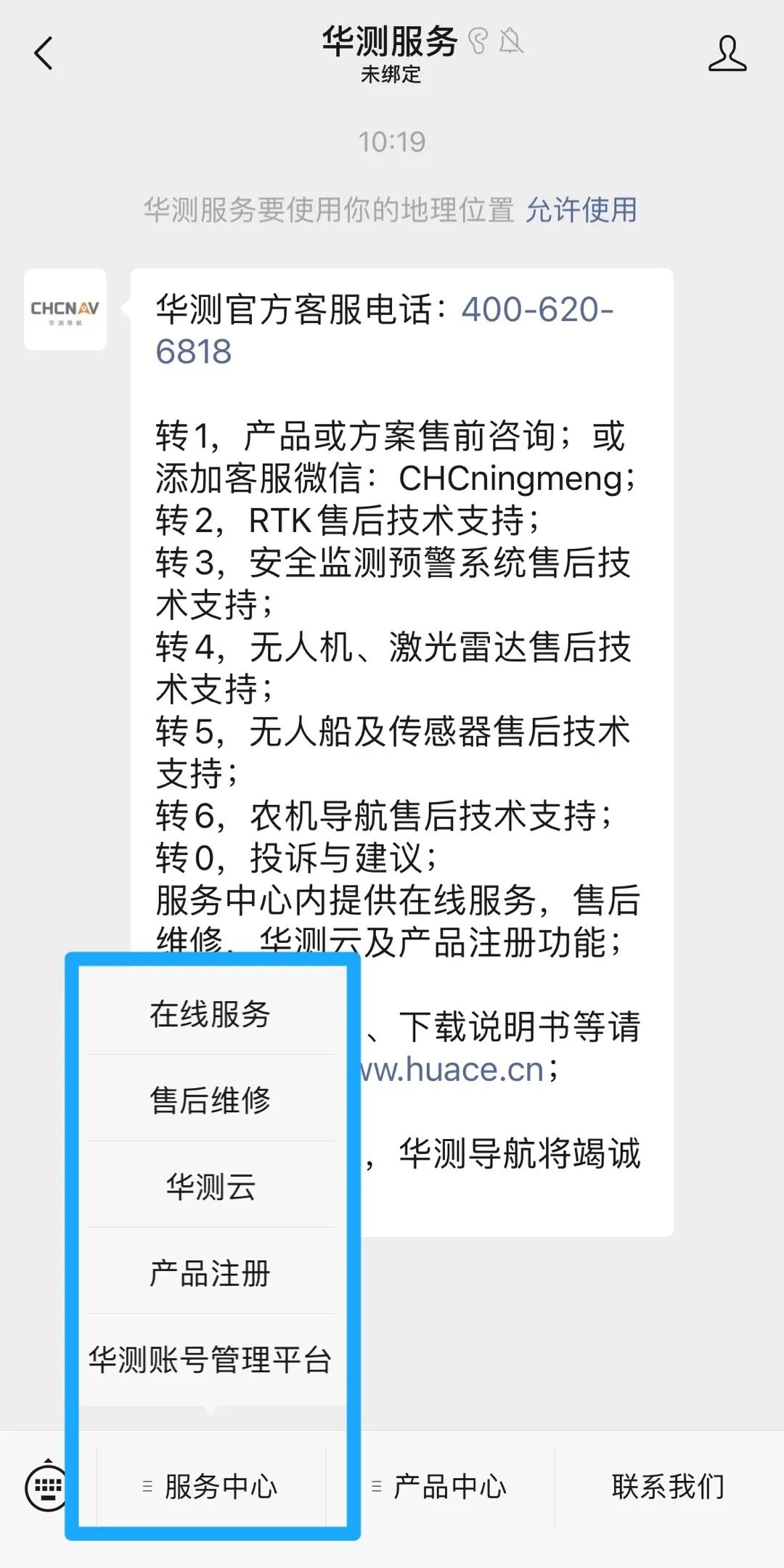 现在,这个面向超10万关注者提供服务的平台已新增更多实用功能。在自定义菜单的服务中心和产品中心,您可以发现线上服务、售后维修登记查询、华测云注册、华测云课堂等多个入口,通过自主方式轻松满足各类服务需要,一站式解决问题。