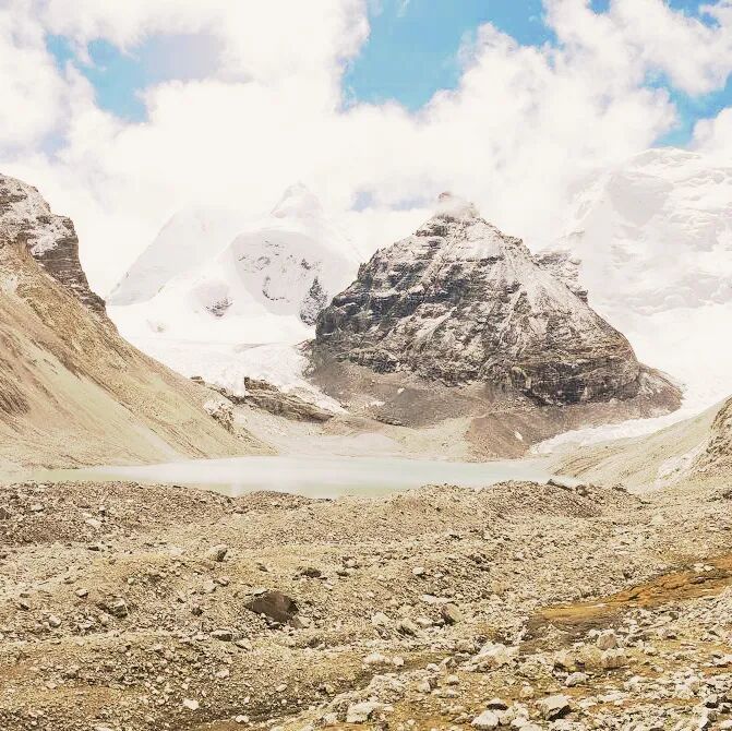 沿郎果扎加河逆流而上3小时,海拔渐渐拔升至5400米。空气愈发凛冽而稀薄,令人难以喘息。高原反应带来的剧烈头痛,为此行更添艰难。唯有目的地所在处,山的远影仿若笑靥,有一双眼瞳和上扬唇角,让愉悦之情仍能从心尖涌起。