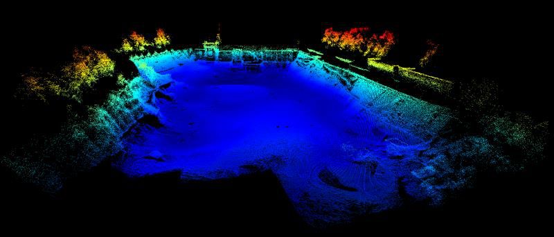 华测工作人员带着华微6号搭载iWBMSh STX和iLiDAR激光扫描仪赶赴现场,很快完成了设备的组装、下水。因为整个方案采用高度集成的设计,免安装校准,姿态与声呐基阵集成安装,出厂姿态0偏差,无需再外业找斜坡水域跑校准线,不但节省至少半天的工作量,操作也更加简单。