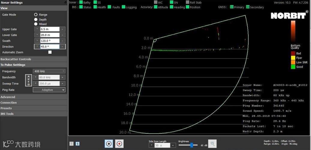 华微6号搭载iWBMS多波束经过简单安装调式就下水了,免去了大船固定安装的过程。除了安装快速,提高效率的关键在于iWBMS多波束210°超大开角的设计。