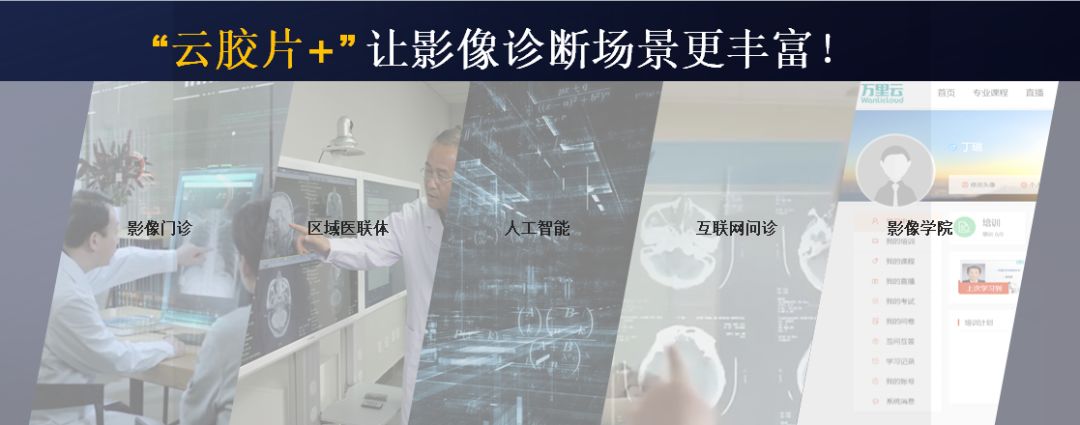 万里云云胶片也推出了更多延伸业务,比如建立多维影像生态体系,让影像诊断的场景更丰富。通过云胶片的建设来推动影像门诊的建设、建立以云胶片为基础的区域影像医联体、为人工智能的落地提供了先决条件,患者利用云胶片服务可以在移动端向医生发起远程报告解读及远程问诊,同时万里云影像学院对外开放,汇集国内外知名院校和三甲医院主任老师们的经典案例和教学资料供医务界朋友随时查看,助力医院提升科室整体医疗水平。