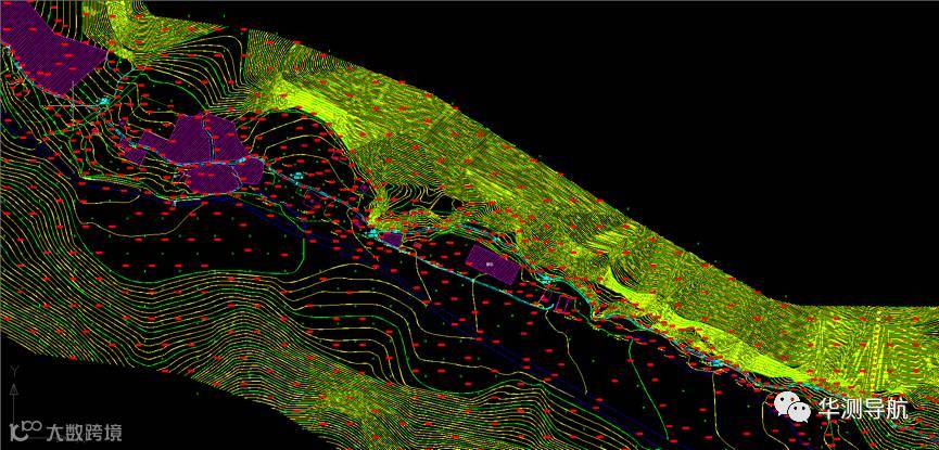 数据通过精细分类后,剔除了植被点、噪声点、建筑物点等其他地物点,获得精准的地面点,并提取出保留了地形特征点的高程点数据。