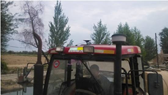 安装于农机的驾驶室之上的组件结合了高精度的卫星定位系统和惯导系统,用于接收定位卫星信号,定位出农机目前的位置、姿态等信息;同时接收基准站发射的改正数据信息,即使在坡度复杂的田地中,仍能准确的定位出车辆的实际位置。