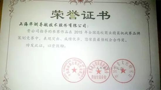 4月27日,“2015年全国高校商业精英挑战赛品牌策划竞赛”圆满落幕,由上海华测导航技术股份有限公司指导的参赛作品《北斗“创客”——蓝图500手持终端》表现突出、成绩优异,荣获最佳校企合作奖和参赛作者个人荣获三等奖!
