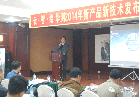 在会上,华测吉林办区域经理常明介绍了华测2014年新一代GNSS接收机i80和i60的性能优势,紧接着,华测技术部崔鹏介绍了包括华测移动测绘车,三维激光扫描仪等等最新前沿测量技术和设备,技术部潘强着重介绍了华测GIS设备在地理国情项目和天然气及自来水管线方面的应用。