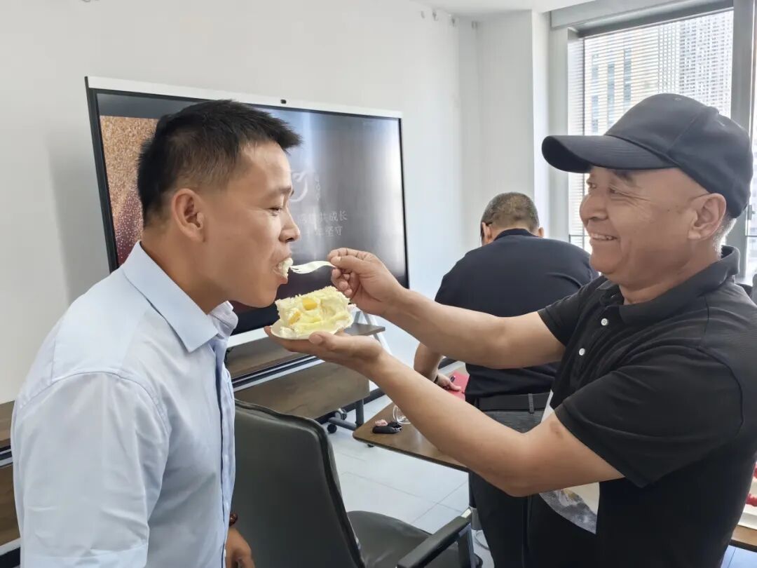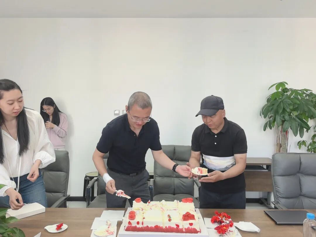 切完蛋糕后,同事们有序上前领取蛋糕。大家围坐在一起,品尝着这份甜蜜,纷纷向王哥送上祝福。现场欢声笑语不断,温暖的氛围萦绕在每个人心间,这一刻,是对王哥十年付出的最好回馈,也让团队的凝聚力愈发深厚。