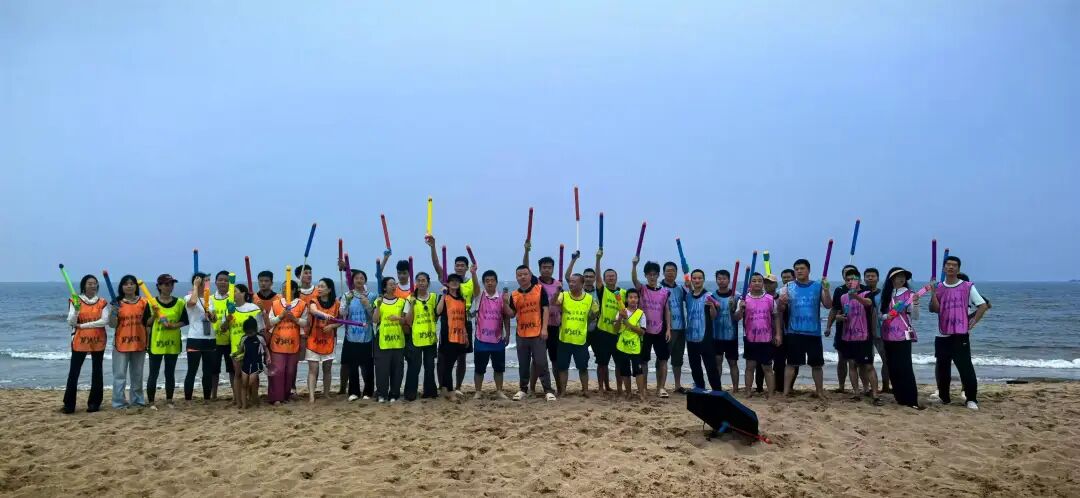 8 月 15 日,载满期待的大巴车准时出发,经过 5 小时的奔赴,于 13 点整抵达黄金海岸。简单休整后,一顿充满海滨风味的简餐为这场团建拉开序幕。午后的沙滩上,四色队旗迎风招展 —— 粉色战队的灵动、绿色战队的活力、橙色战队的热情、蓝色战队的沉稳,10 人一组的战队阵容迅速成型,积分争夺战的大幕就此拉开。