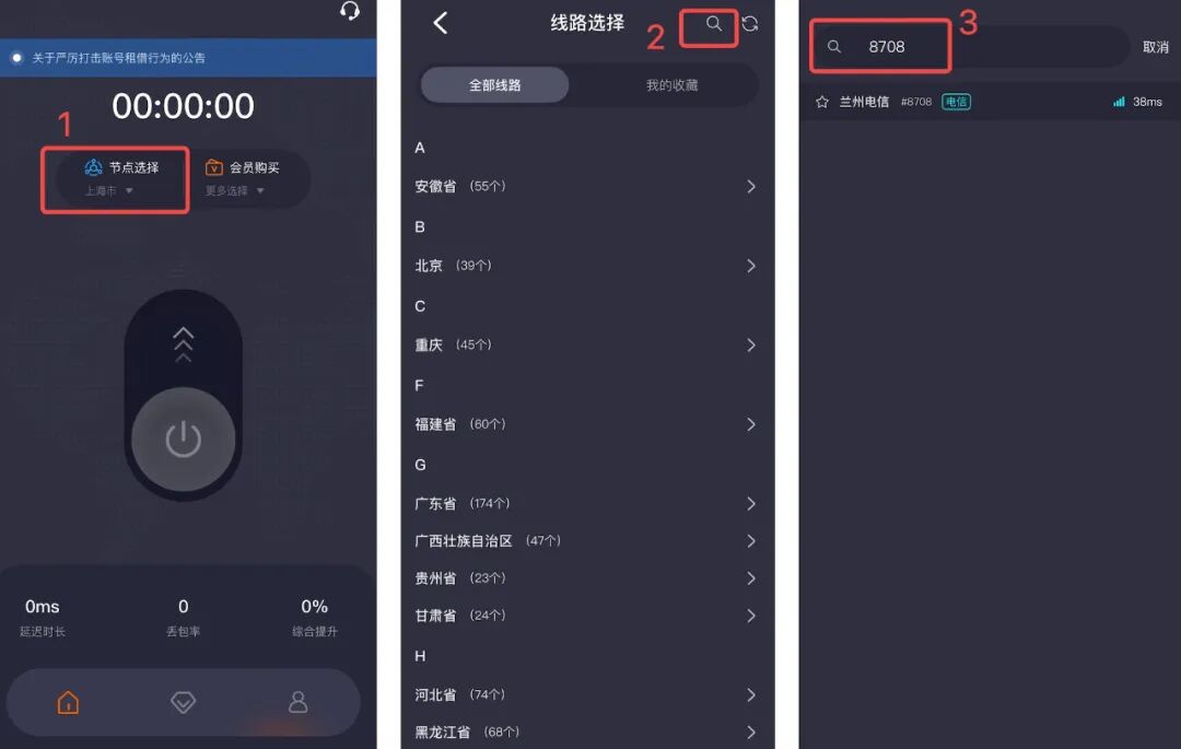 在APP内可以搜索节点编号: