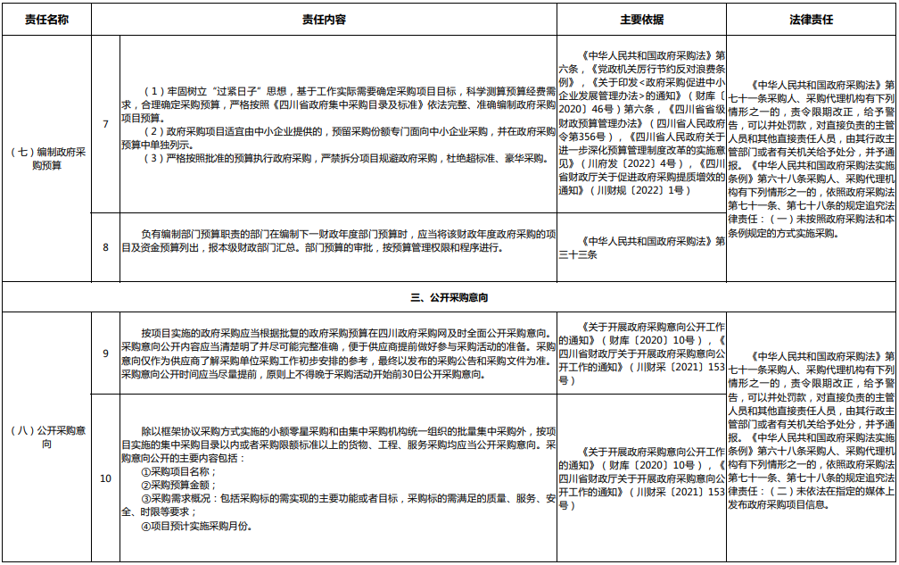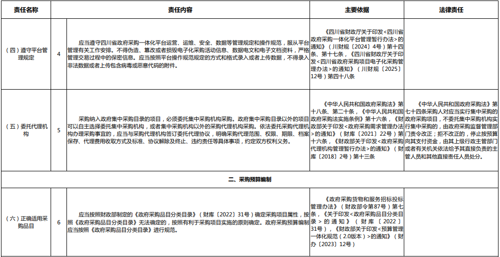 近日,四川省财政厅关于编发《四川省政府采购项目采购人主体责任清单(2025年版)》的通知发布,指导采购人规范开展政府采购活动,避免工作出现“越位”“缺位”问题,清单包括50项内容。