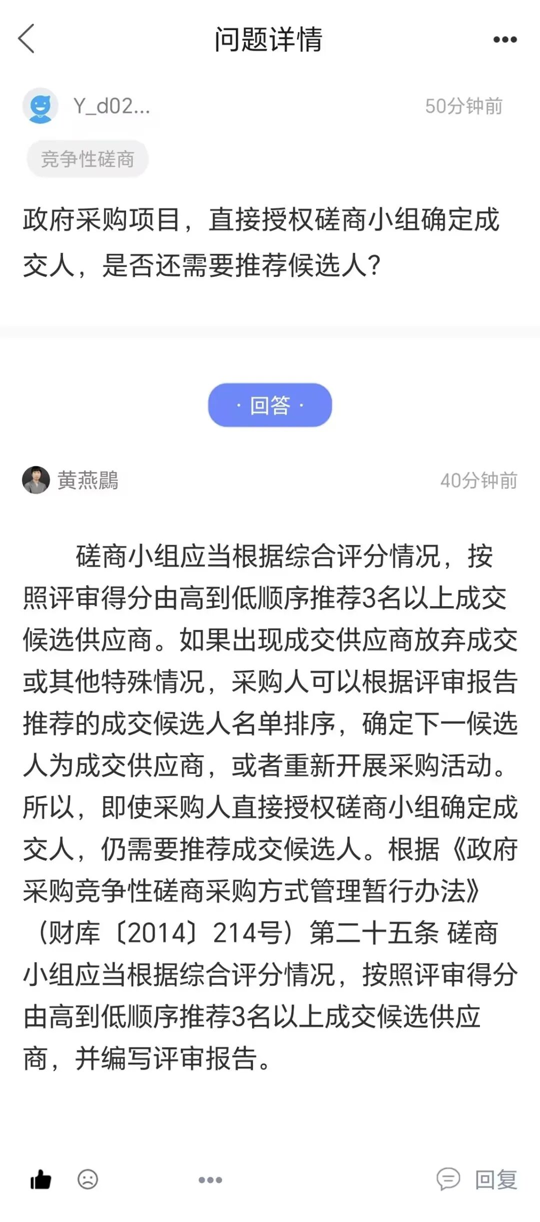 问:政府采购项目,直接授权磋商小组确定成交人,是否还需要推荐候选人?