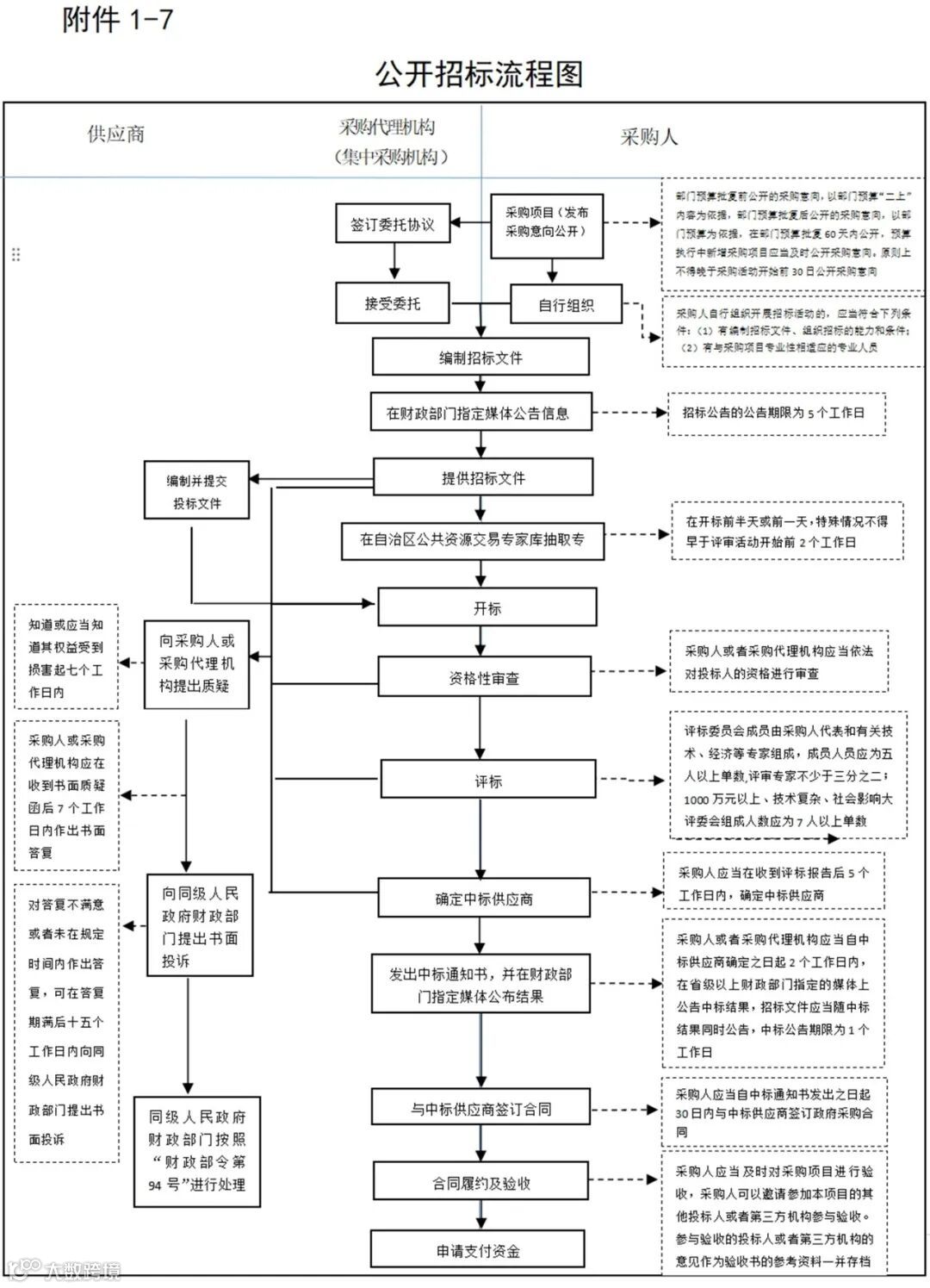 《指南》包括了政府采购文件范本、政府采购公告和公示信息格式规范、供应商质疑、投诉范本等,还包括了6种采购方式的流程图。