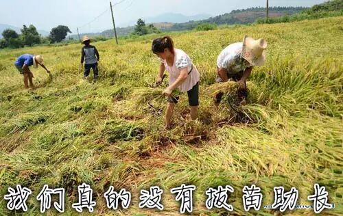 4、2012年8月,网友曝出江西早稻拔苗助长“不能吃”的谣言。农民会使用各种方法包括化肥、农药对第一季揠秒助长(拔苗助长);而对于第二季由于没有压力,农民就令其自然成长。一位从事水稻研究的专家说,该观点纯属无稽之谈。