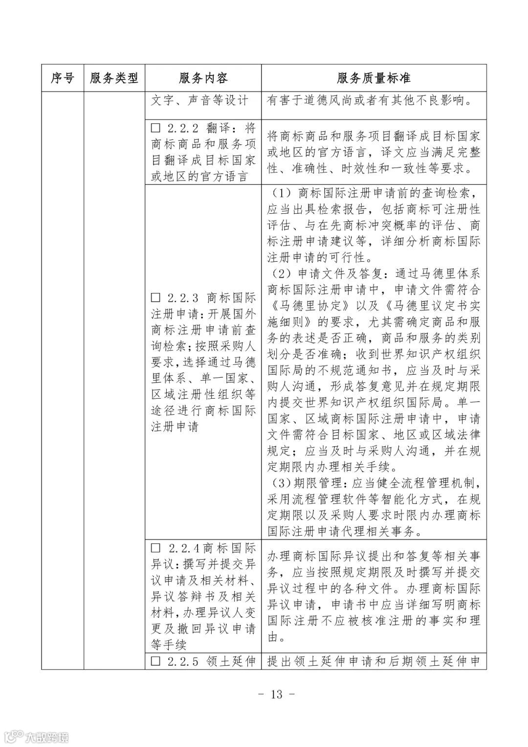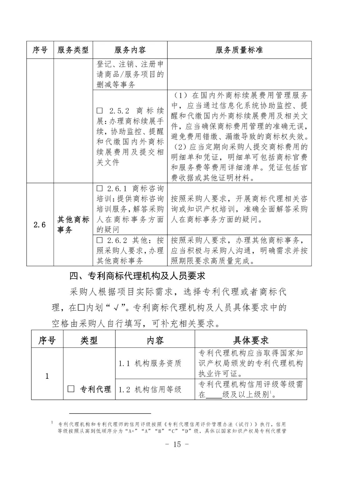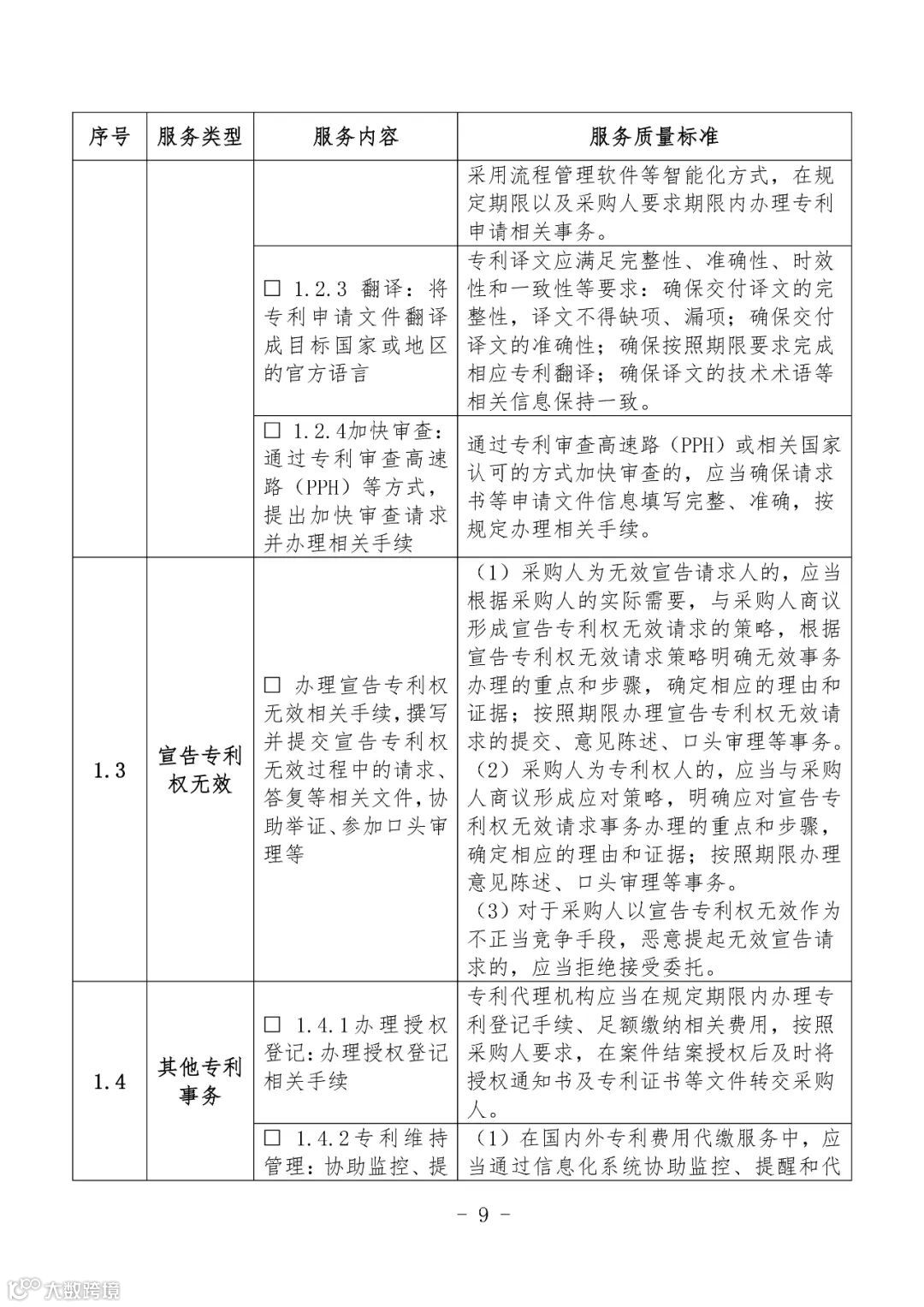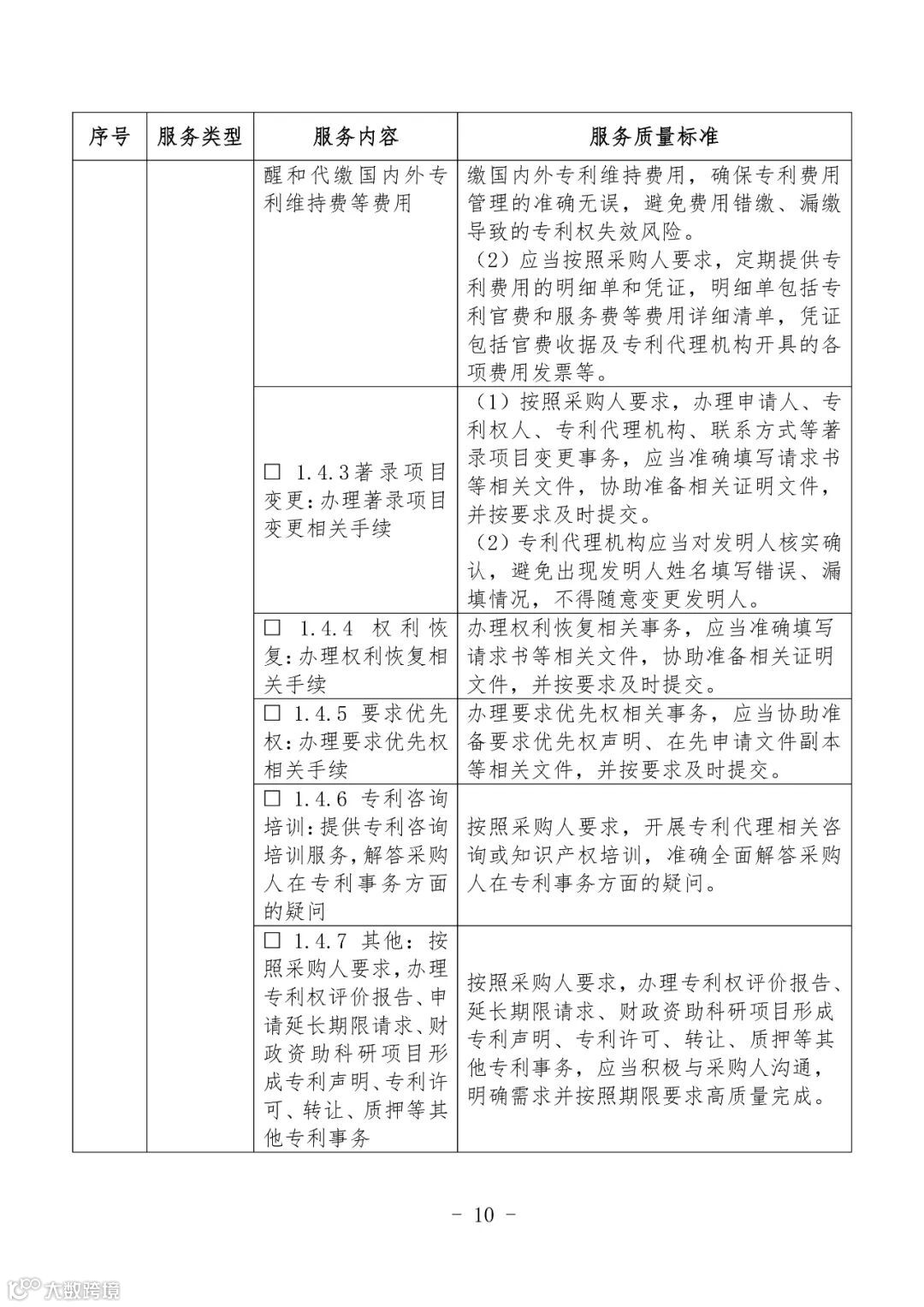 附件:专利商标代理服务政府采购需求标准(征求意见稿)