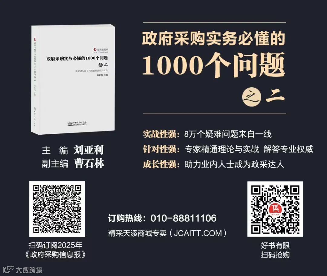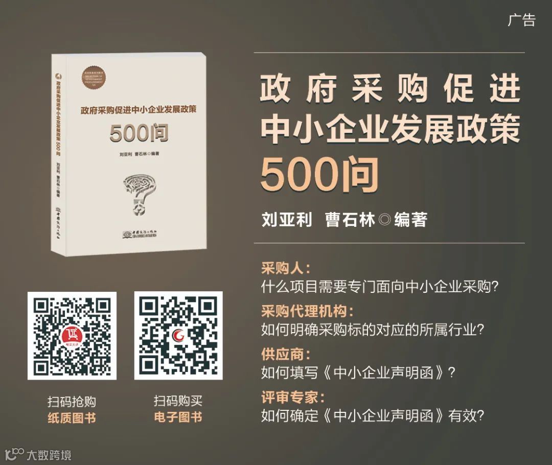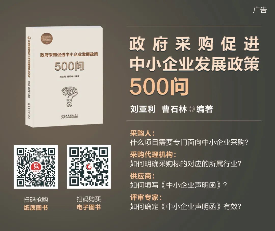各位听友,如果你对本期音频有任何意见可以在留言板上留言探讨。为了更好地帮助同行解疑释惑,由本人和曹石林老师编著的《政府采购促进中小企业发展政策500问》《政府采购实务必懂的1000个问题(之二)》等系列图书已经与大家见面了,欢迎感兴趣的听友通过精采天添商城下单订购。