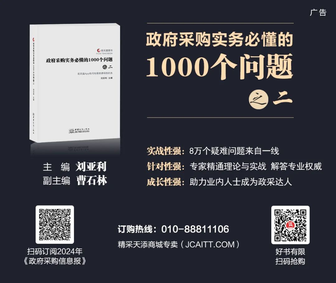 各位听友,如果你对本期音频有任何意见可以在留言板上留言探讨。为了更好地帮助同行解疑释惑,由本人和曹石林老师编著的《政府采购促进中小企业发展政策500问》《政府采购实务必懂的1000个问题(之二)》等系列图书已经与大家见面了,欢迎感兴趣的听友下单订购。