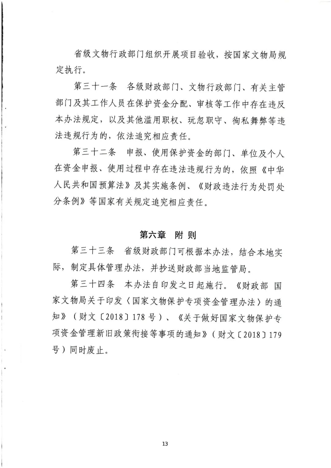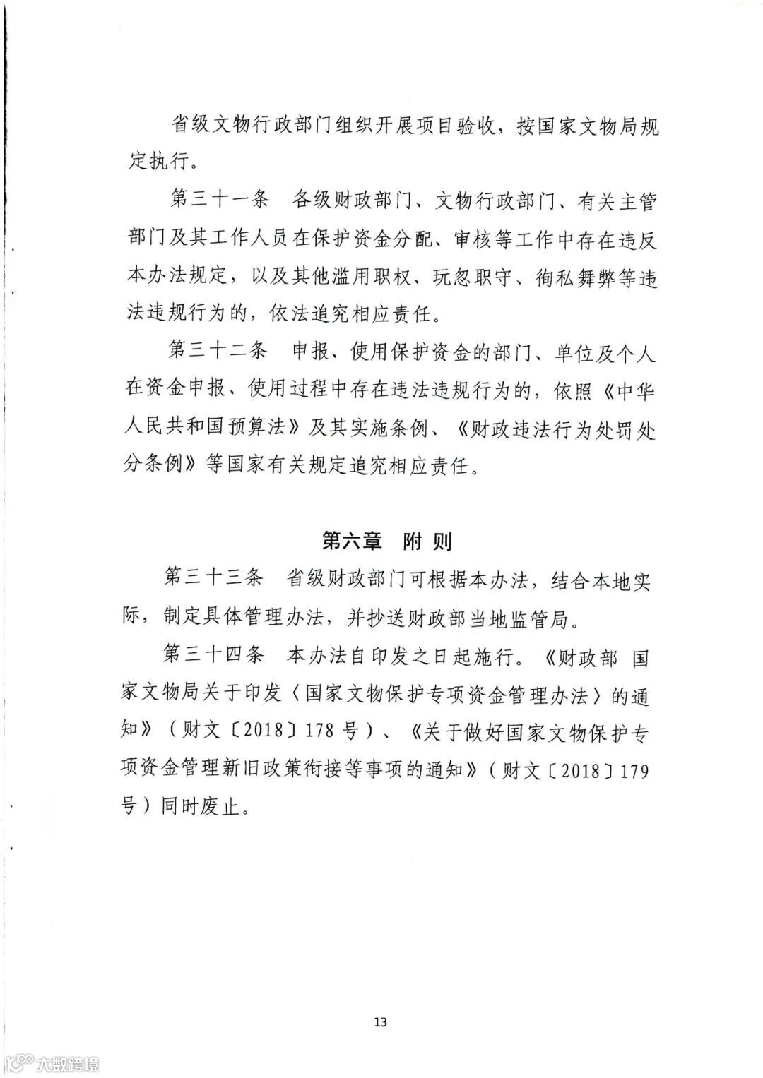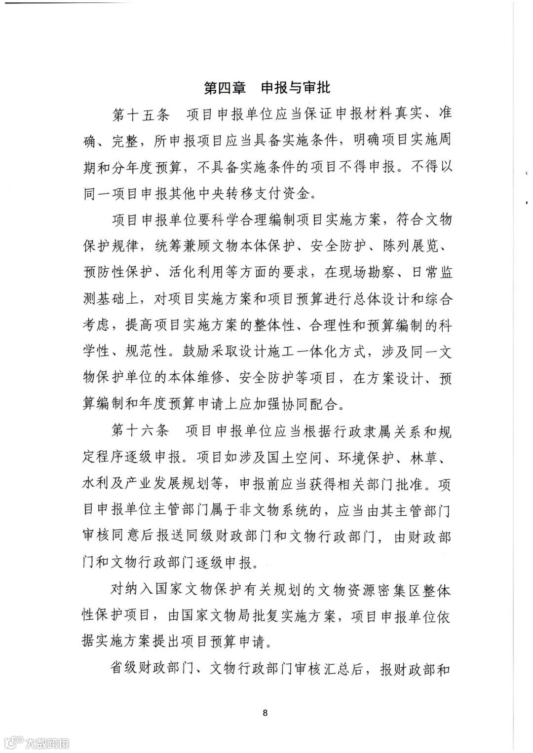日前,财政部、国家文物局发布《关于印发〈国家文物保护资金管理办法〉的通知》(财教〔2023〕279号,以下简称《办法》)。《办法》包括总则、补助范围和支出内容、分配办法、申报与审批、资金使用管理和监督、附则共6章。