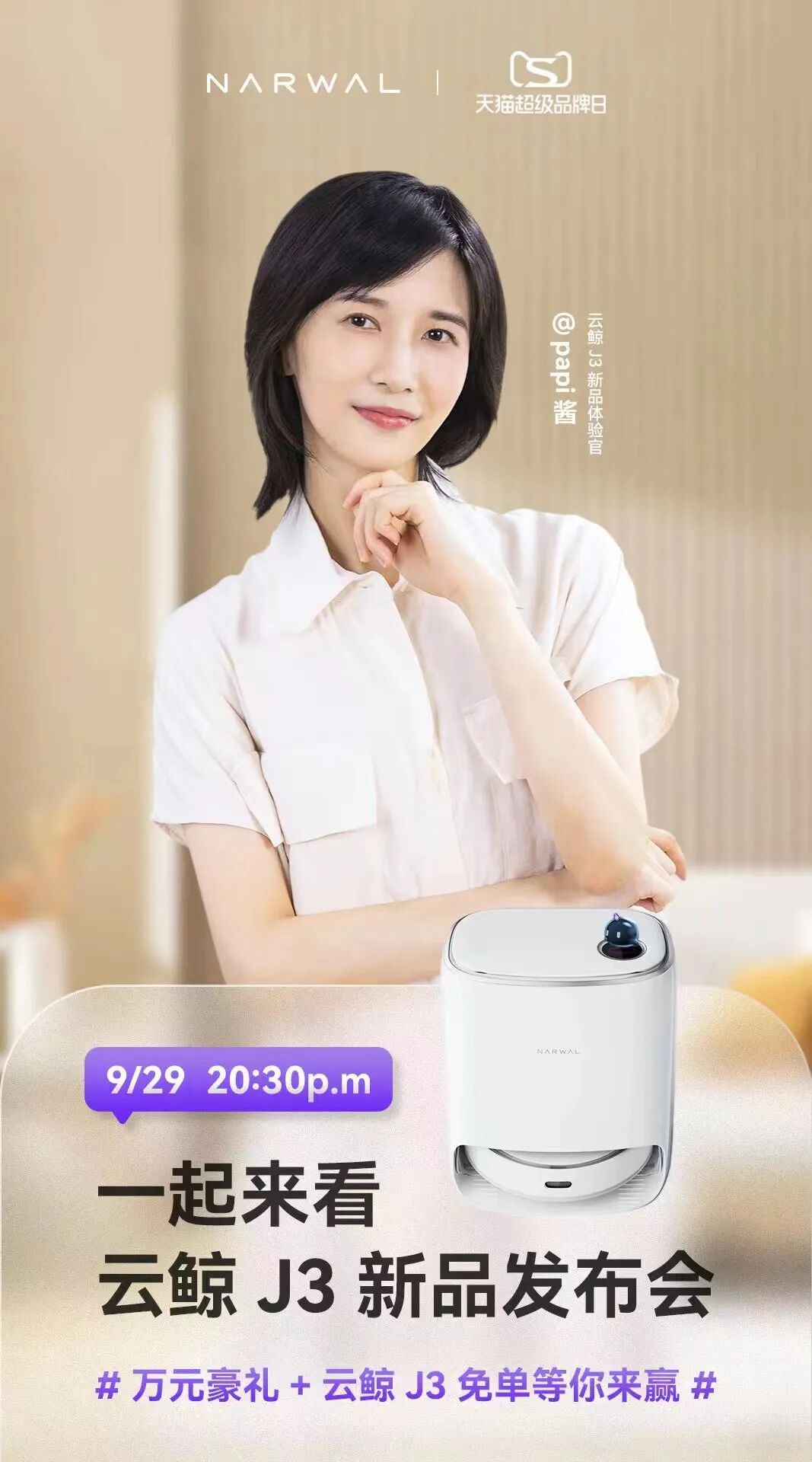 papi酱 云鲸J3新品体验官天猫直播
