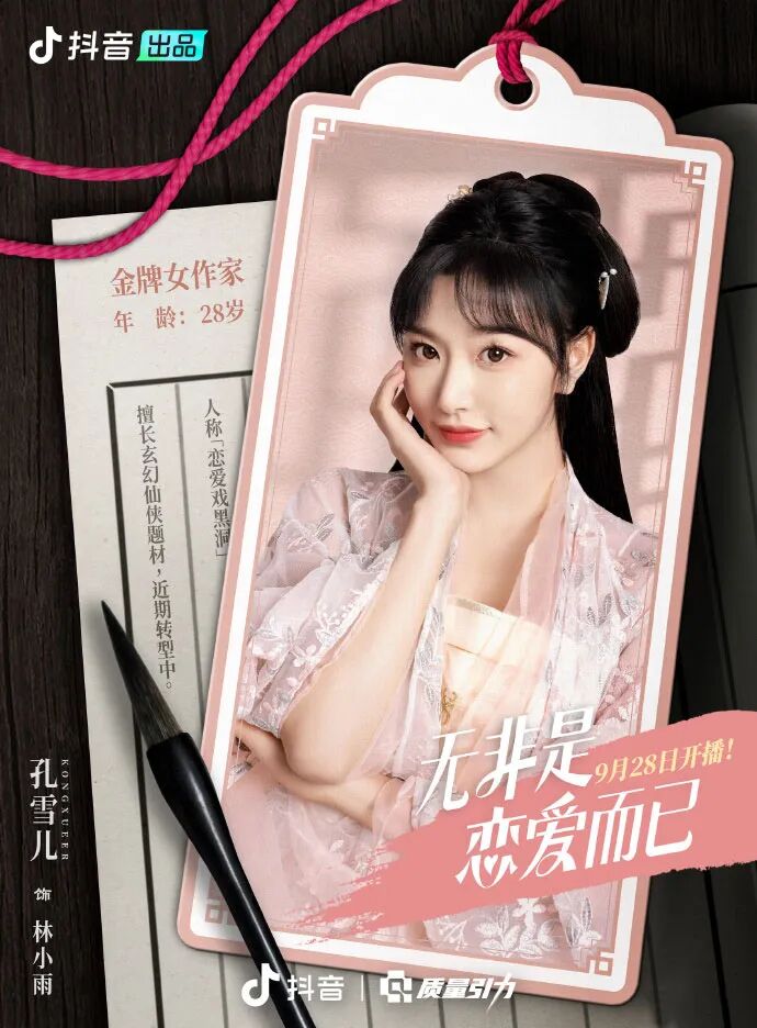 周三,由孔雪儿领衔主演的网剧《无非是恋爱而已》开播。该剧讲述了不懂爱的作家林小雨,偶然进入自己创作的小说世界,为了回到现实努力完成“真爱任务”的故事。孔雪儿在剧中饰演女主角林小雨。
